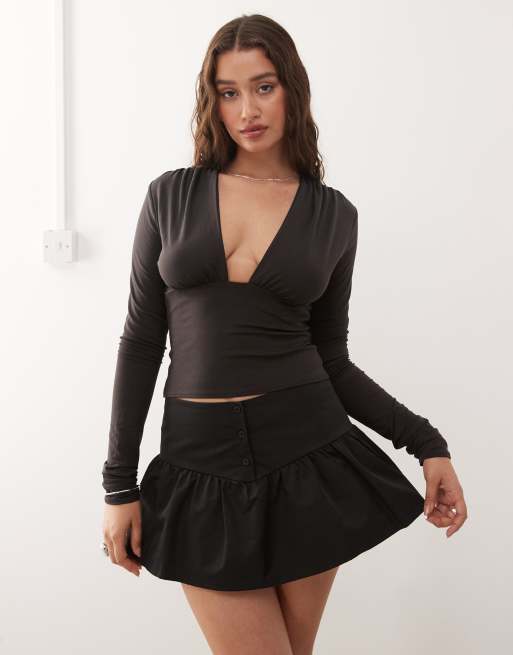 Weekday – Langärmliges, tief ausgeschnittenes Neckholder-Oberteil in Dunkelbraun, exklusiv bei ASOS