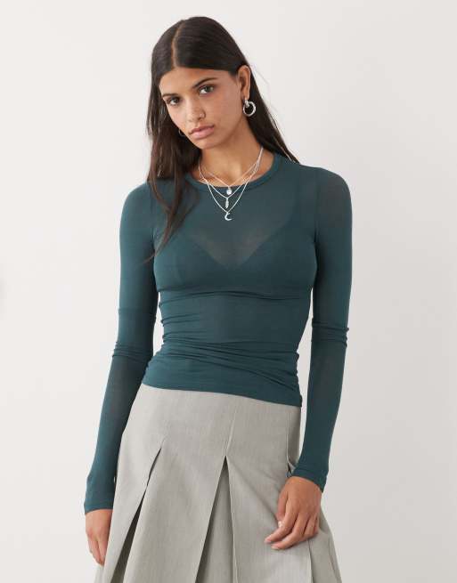 Weekday – Langärmliges, weiches Shirt in halbtransparentem Dunkelgrün, exklusiv bei ASOS