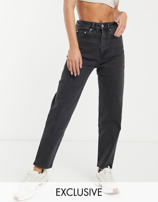 Weekday – Lash – Mom-Jeans in verwaschenem Schwarz aus Baumwolle mit hohem Bund - BLACK