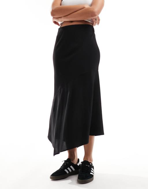Weekday – Marita – Asymmetrischer Satin-Midirock in Schwarz