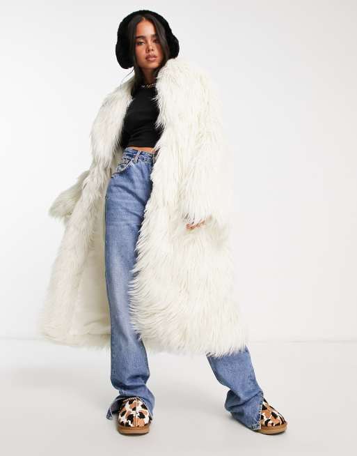 Weekday – Mia – Mantel aus Kunstpelz in gebrochenem Weiß