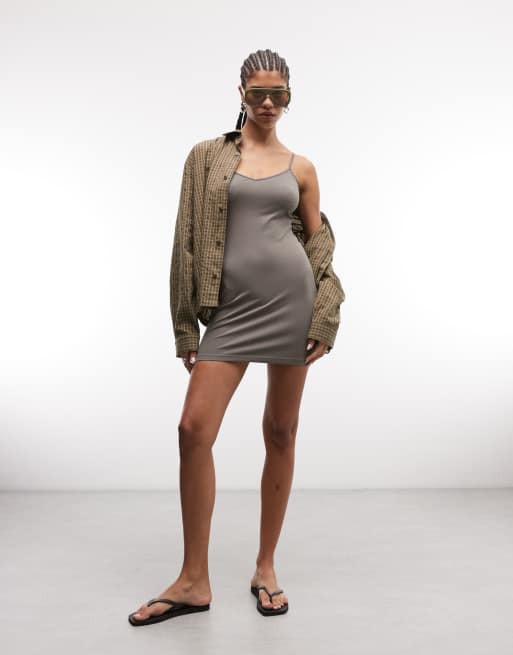 Weekday – Mini-Trägerkleid in Grau mit V-Ausschnitt