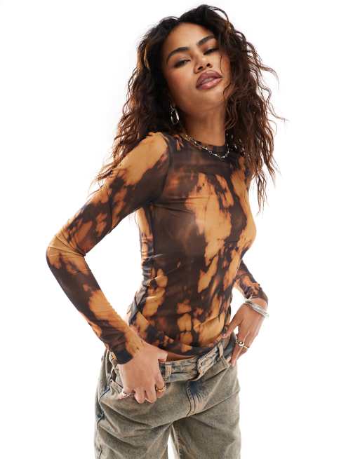 Weekday – Nico – Langärmliges Oberteil aus Netzstoff mit Ausbrenner-Muster