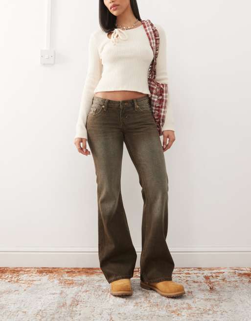 Weekday – Nova – Bootcut-Jeans in dunkelbrauner Waschung mit niedriger Taille