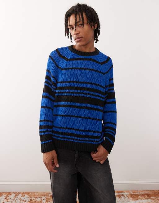 Weekday – Oversize-Pullover in Blau gestreift mit offener Strickstruktur