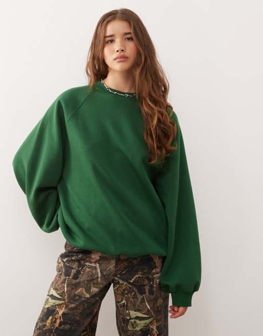 Weekday – Oversize-Sweatshirt aus schwerem Jersey in Dunkelgrün
