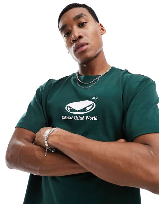 Weekday – Oversize-T-Shirt in Dunkelgrün mit plastischem Alien-Print