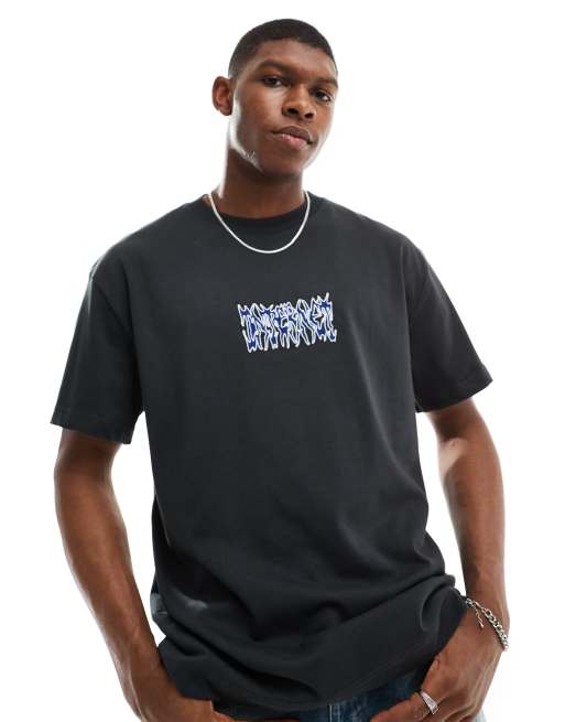 Weekday – Oversize-T-Shirt in Schwarz mit gestickter Internet-Textgrafik
