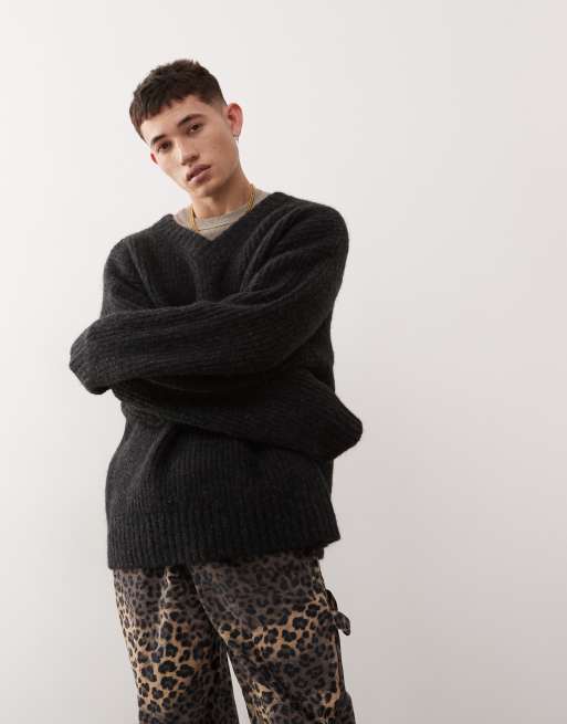 Weekday – Riley – Grobstrick-Pullover aus Wollmix in Schwarz meliert mit V-Ausschnitt