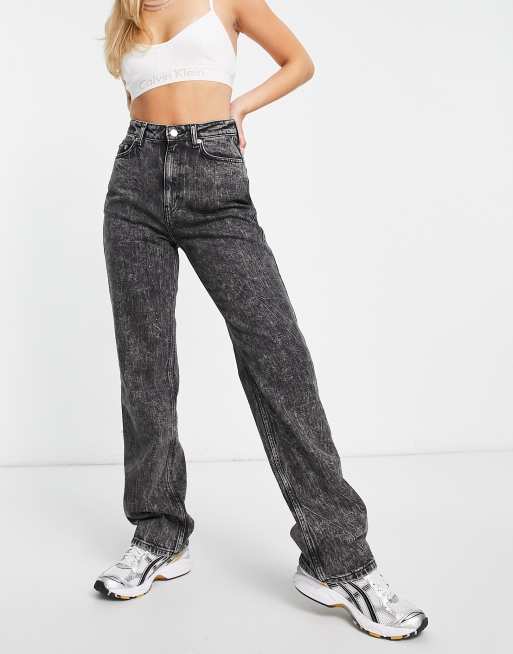 Weekday – Rowe – Eng geschnittene Jeans mit sehr hohem Bund in verwaschenem Schwarz
