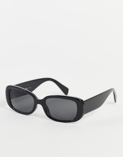 Weekday – Run – Rechteckige Sonnenbrille in Schwarz