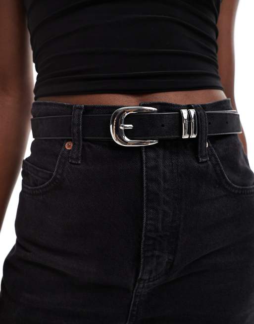 Weekday – Schmaler Western-Gürtel in Schwarz mit silberfarbener Schnalle