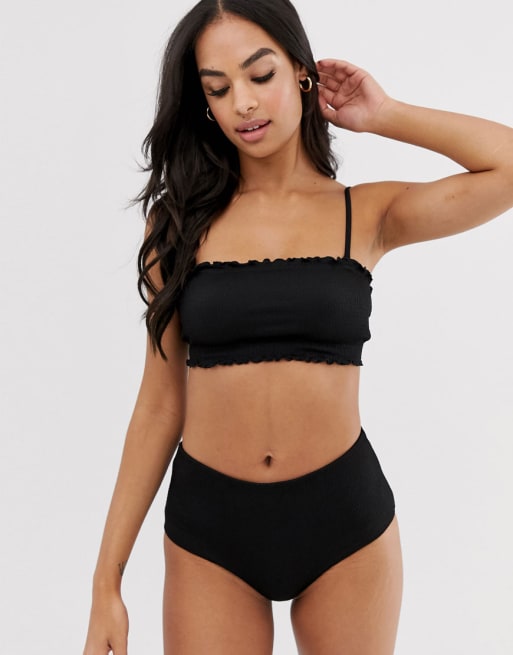 Weekday – Schwarzer Bikini mit hohem Bund und Rüschen