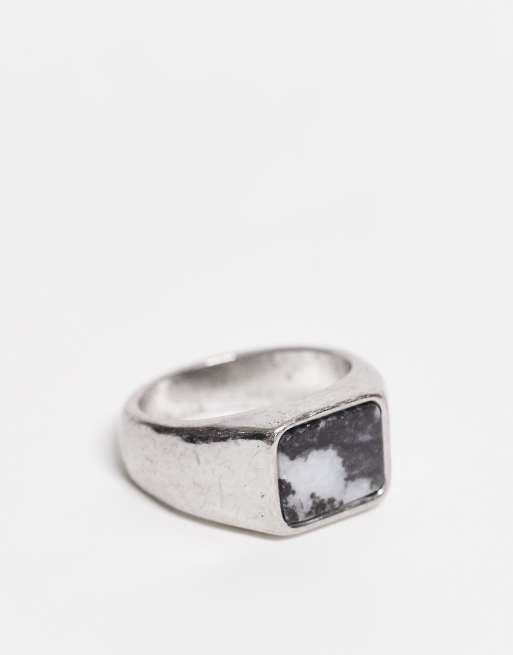 Weekday – Silberfarbener Siegelring mit schwarzem Schmuckstein