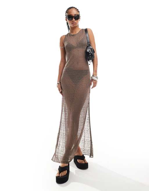 Weekday – Sylvie – Transparentes Maxikleid aus Pointelle-Strick in Braun