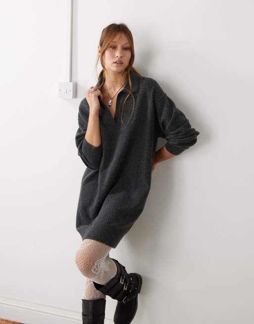 Weekday – Tahlia – Kurzes Strickkleid in schwarz meliert mit Polokragen, exklusiv bei ASOS