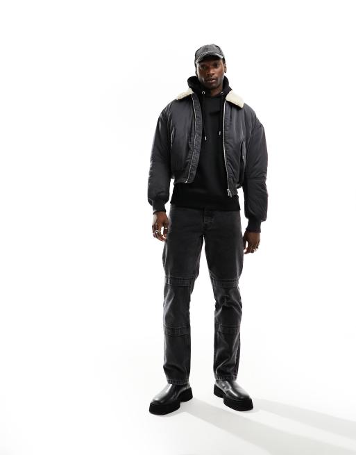 Weekday – Timo – Bomberjacke in Dunkelgrau mit Kunstpelzkragen