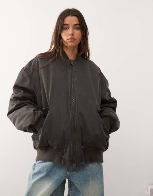 Weekday – Wattierte Oversize-Bomberjacke in verwaschenem Dunkelgrau