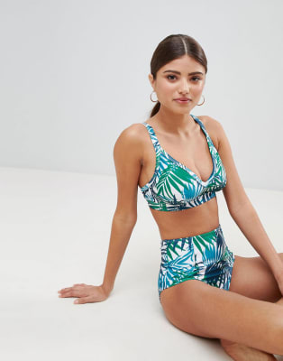 Wolf & Whistle – Fuller Bust – Neckholder-Bikini mit Palmenmuster