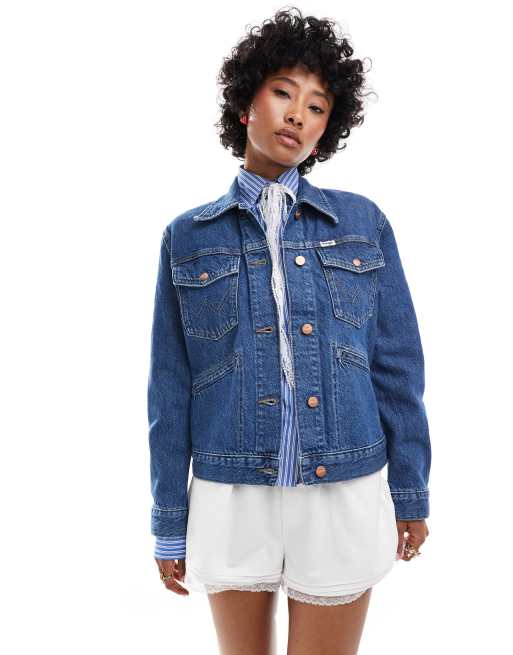 Wrangler – Jeansjacke in Dunkelblau mit Taschendetails