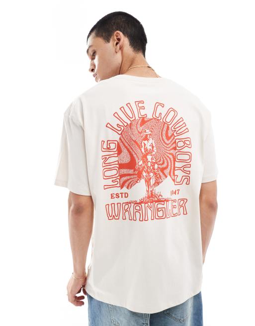 Wrangler – Oversize-T-Shirt in gebrochenem Weiß mit Cowboy-Logoprint am Rücken