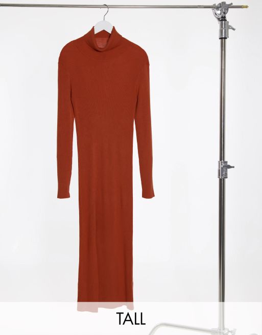 Y.A.S Tall – Langärmliges Pulloverkleid mit Rollkragen in Rostrot
