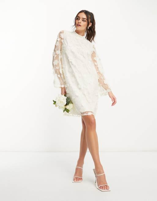 YAS – Bridal – Minikleid in Weiß mit 3D-Blumenmuster