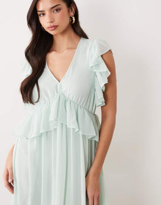 YAS – Chiffon-Maxikleid in Salbeigrün mit Rüschendetail