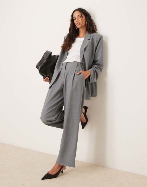 YAS – Elegante Dad-Hose in Mittelgrau meliert, Kombiteil