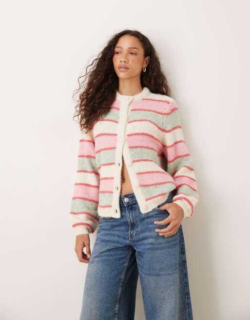YAS – Gestreifte Strickjacke in Creme und Pastellfarben