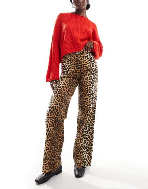 YAS – Jeans mit Leopardenmuster, geradem Schnitt und hohem Bund