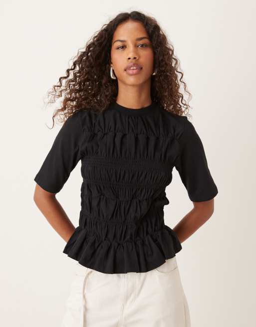 YAS – Jersey-Oberteil in Schwarz mit Raffung vorne