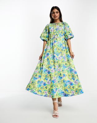 Y.A.S – Midi-Hängerkleid mit Blumenmuster und seitlichen Zierausschnitten