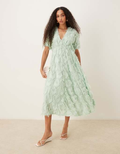 YAS – Midikleid in Nebelgrün mit V-Ausschnitt und Strukturmuster