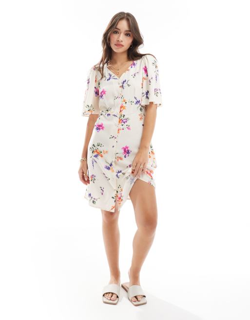 YAS – Mini-Hemdblusenkleid in Cremeweiß mit Flatterärmeln und Blumenmuster