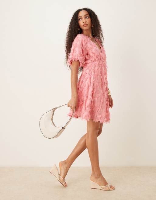 YAS – Minikleid in Bubblegum-Rosa mit V-Ausschnitt und Strukturmuster