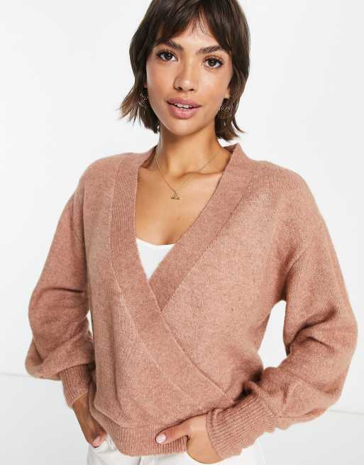 Y.A.S – Pullover in Kamelbeige mit Wickeldetail vorne