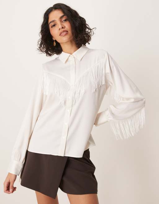 YAS – Western-Hemdbluse in Cremeweiß mit Fransendetail