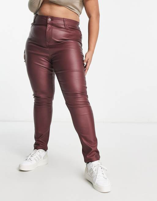 Yours – Beschichtete Skinny-Jeans in Burgunderrot