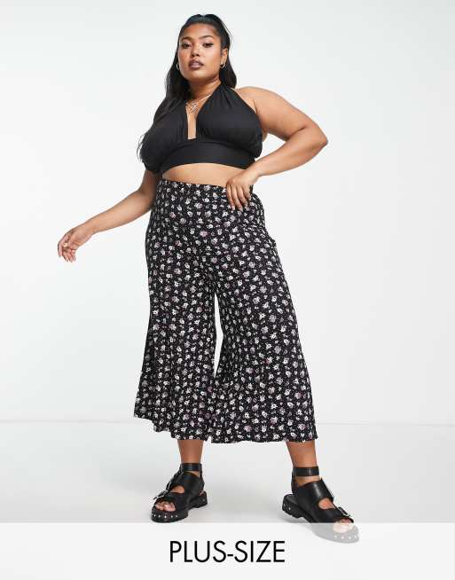 Yours – Exclusive – Culotte in Schwarz mit Blümchenmuster
