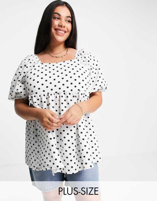 Yours – Oberteil mit weißen Tupfen, mit eckigem Ausschnitt und Puffärmeln