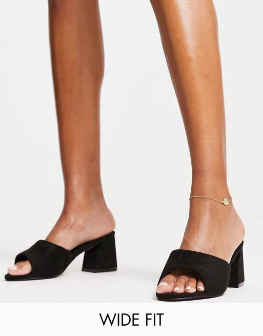 Yours Wide Fit – Schwarze Pantoffeln mit Absatz, weite Passform