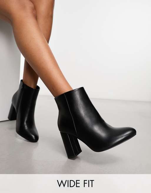 Yours Wide Fit – Spitze Stiefeletten in Schwarz mit Absatz, weite Passform