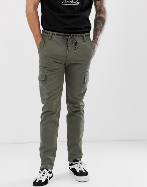 YOURTURN – Enge Cargo-Hose mit Reißverschlüssen an den Knöcheln in Khaki