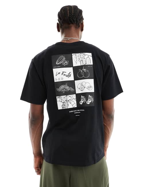 Denim Project t-shirt in black with barcelona fruit chest and back print