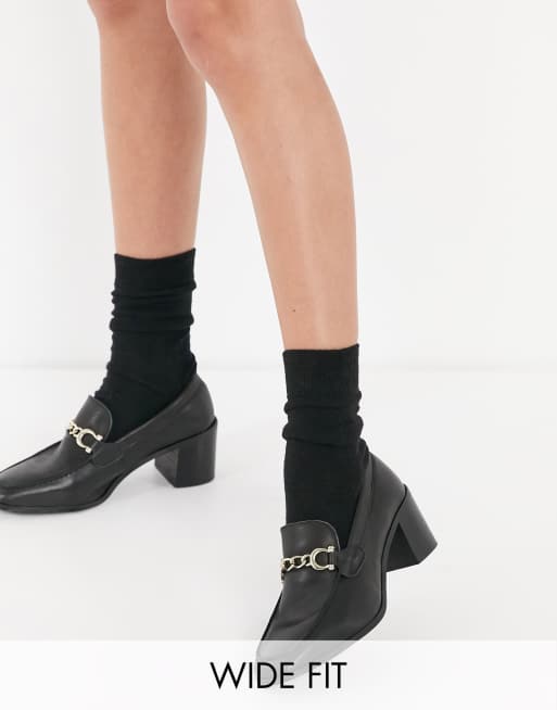 Depp wide fit mid block heel loafers with snaffle trim in black leather