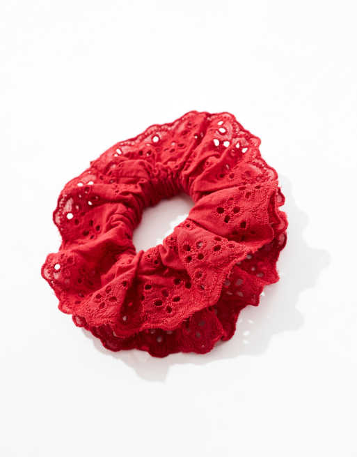 DesignB London broderie hair scrunchie in red