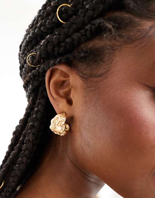 DesignB London chunky hammered hoop earrings in gold