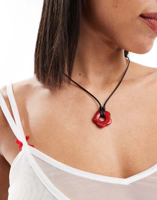 DesignB London cord necklace with resin flower pendant in red