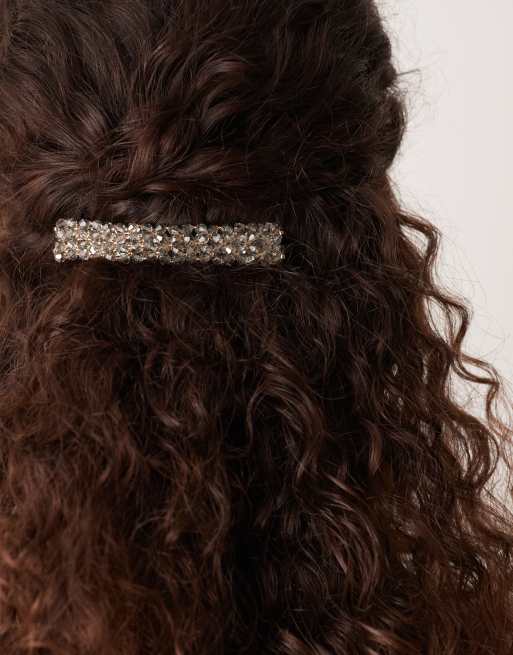 DesignB London embellsihed barette hair clip in silver